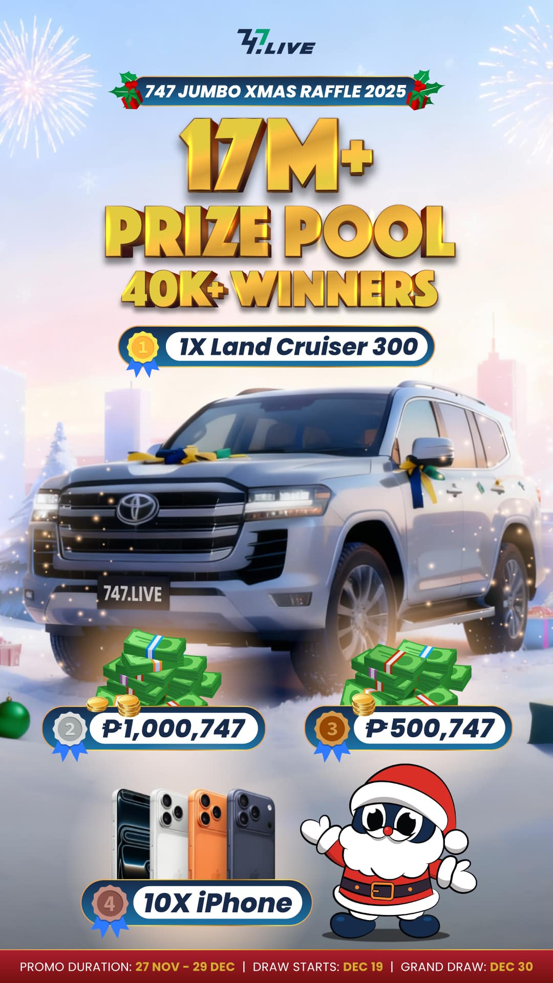 747 XMas Raffle 2025 is here to make your holiday season unforgettable with exciting cash prizes and amazing gifts!